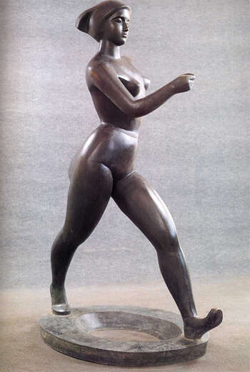 例九:《走向世界》田金铎 青铜 220×133×78cm 1985 首届全国体育美展特等奖 瑞士洛桑奥委会总部收藏 首届全国城市雕塑评比最佳奖