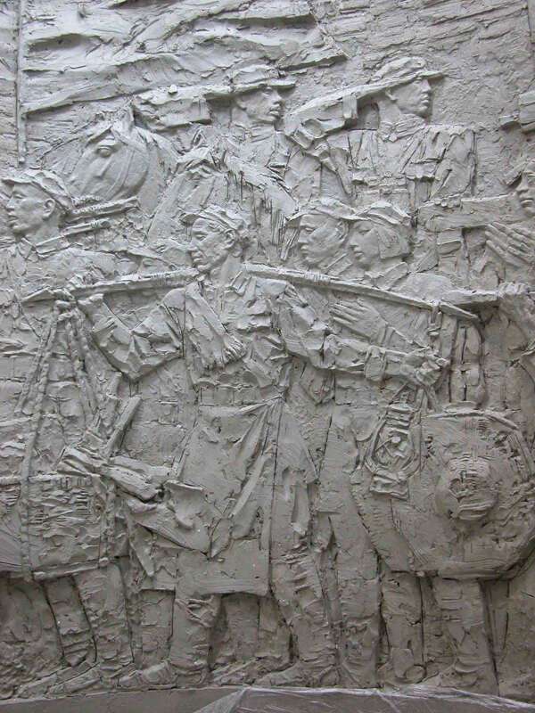 作品对于所表现的内容,进行高度主观的提升。包括对于形体结构的概括和整理,圆雕和浮雕的结合使用;使局部高度融合在整体气势之中,融合在对于中国气派,中国精神的感觉和渗透之中。
