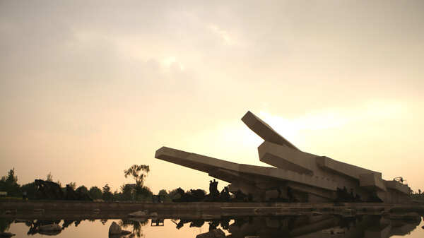 例三:《人民公社万岁》—工农商学兵组曲乃述、王熙民、高秀兰、吴国章、苏兆海 水泥 800×400×300cm 1959 首届全国城市雕塑评比最佳奖 北京农业展览馆